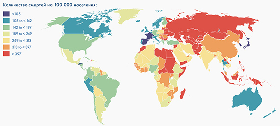 11 миллионов смертельных случаев и + потеря 255 миллионов лет здоровой жизни населения вследствие нетрудоспособности.